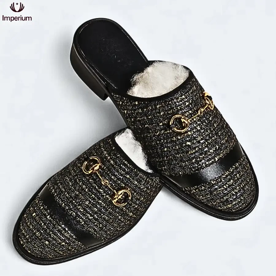 The backless silhouette ensures effortless slip-on wear, ideal for high-profile occasions, cultural ceremonies, or relaxed luxury settings. Inside, a soft padded insole cradles the foot for prolonged comfort, while the sturdy sole adds durability without compromising refinement.