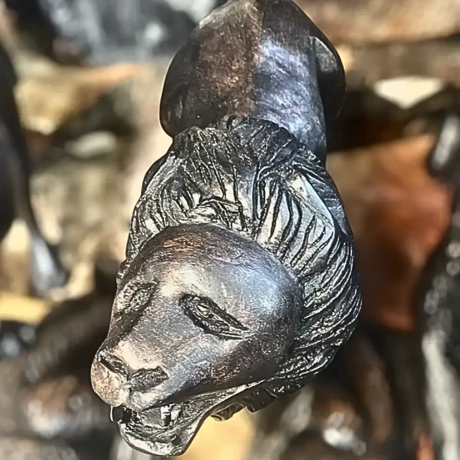 The Regal Roar by Imperium is a commanding tribute to the king of the wild, captured in a Handcarved Wooden Lion Sculpture that symbolizes courage, leadership, and majesty. Crafted from solid wood and polished to a dark, lustrous finish, this piece embodies both the raw strength and noble presence of the lion.